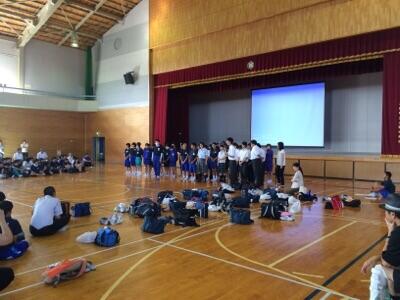 幼小中合同で今年度2回目の避難訓練を行いました。みんな真剣に速やかに避難ができました。