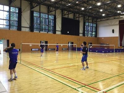 今日はバドミントン部が練習をしていました。5分間走をやっているところでした。夏の暑さに負けずに練習に励んでいます。 体力、技術の向上を目指してがんばれ!