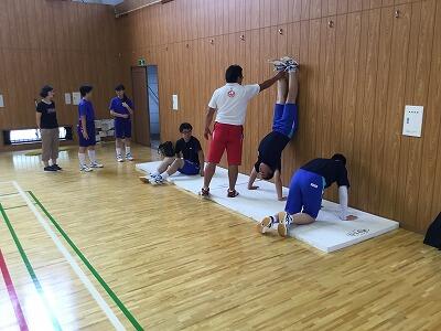 全員でマット運動を行っていました。1年生は前転や後転など滑らかに行うこと、2,3年生はそれを滑らかに加え、安定して行うこと、さらには体を動かす楽しさや心地よさを味わうようになることなどが目標です。できるようになる喜びを味わわせたいと思います。