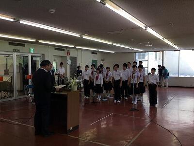 児童生徒の進行で、富岡一中校長、生徒実行委員長からあいさつが述べられました。