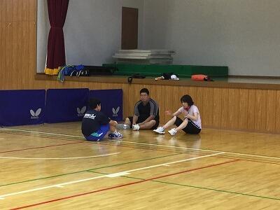 体育館に行ってみると、真剣にミーティングを行っていました。
