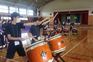 本日6校時目の総合の時間に太鼓を教えていただきました。