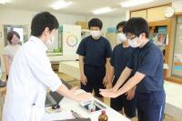 8日(火)、日本赤十字社福島支部より赤十字救急法指導員の金子久仁子様を講師としてお迎えし、心肺蘇生とAEDの講習を行いました。コロナウイルス感染症の対策を十分に行い、生徒、教職員、保護者を対象に、午後の2時間で、大切なお話を聞いたり、資材を用いた実技を行ったりしました。