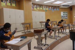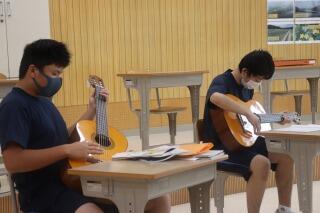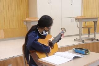 本日4校時、3年生は音楽の授業で、ギターを練習しました。