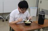本日の昼食は、鳥藤本店の社長、藤田大さんが三春校まで来てくださり、園児・児童・生徒・教職員のために「浜鶏(はまど~り)ラーメン」を振る舞ってくださいました。