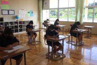 夏休みが明けてすぐのテストで疲れも見えましたが、一生懸命にテストを受けている姿が見られました。夏休みの成果が出る大事なテストです。今回のテストの結果をもとにして2学期の学習に励んでほしいと思います。
