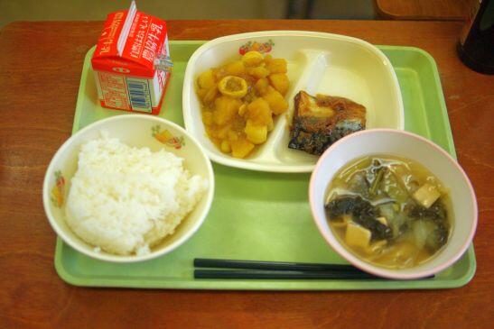 今日のメニューは、サンマのカレー竜田、大根の炒り煮、生揚げの味噌汁。