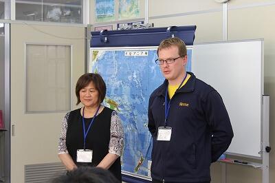 県の交流事業として来日しているニュージーランドの先生ら4名が来校されました。全校体育を参観されたり、1年社会の授業に参加されました。1年生は、事前に準備した質問をし、それに対する現地にお住まいの方からの生の話を聞き、驚きの表情を見せていました。あちらの学校には、子どもが清掃をする習慣がないそうで、本校の生徒と一緒に清掃してからお帰りになりました。