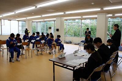 4月19日(木)、生徒会総会とJRC登録式が行われました。会長・副会長の任命、そして前期評議委員会、専門委員会活動計画についての審議でした。少ない人数ながら活発な質問等も出て、有意義なものとなりました。