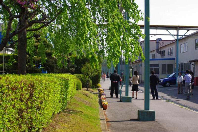 駐車場から校舎へのプロムナード、緑が濃くなってきた。
