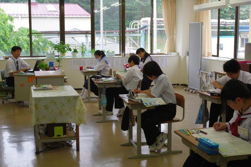 三春校の周囲は緑豊か。窓の外には梅雨の晴れ間。