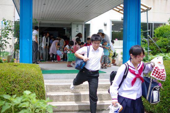 校舎から飛び出していきました。37日間の夏休みが始まります。