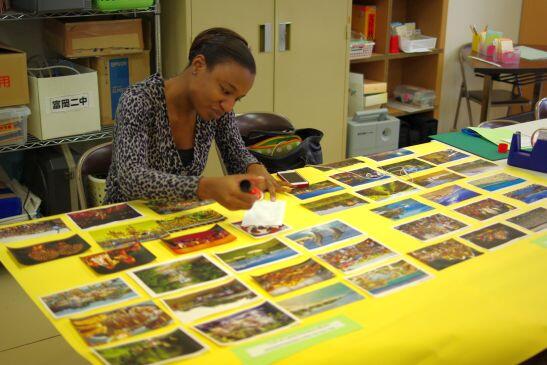図書室兼、多目的室1にてクリスティーナ先生が掲示を作成中。