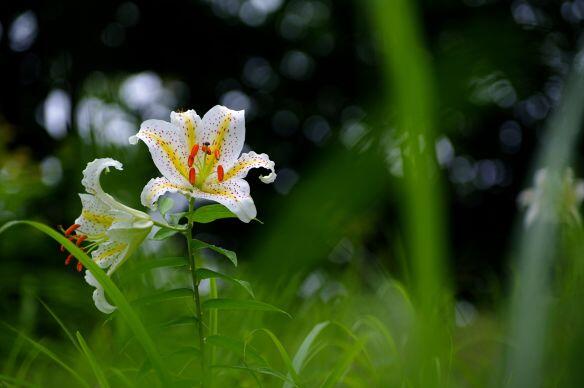 三春校校舎の裏山にオニユリ