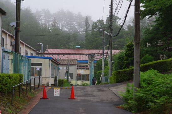 午前7時50分、気温21度、三春校は霧の中。梅雨はいつ明けるのか