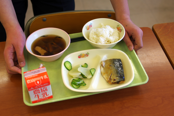 さばの味噌煮、大豆のいそ煮、かぶ漬け。