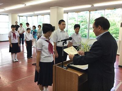 1学期に行われた英検、漢検合格者の表彰がありました。