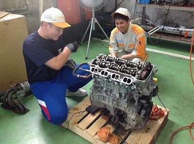 トヨタカローラ福島 郡山店様にて。エンジンの組立など、車好きには楽しすぎるお仕事でした。