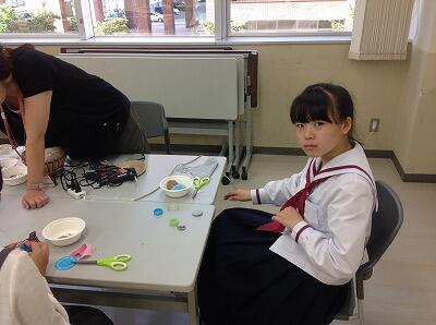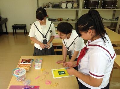 他校生と一緒に、幼児向けにブレスレットを作りました。