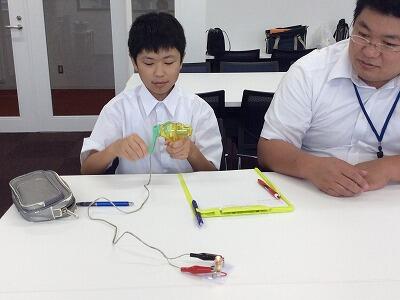 発電のしくみを教えていただき、風力発電の模型を作ったりしながら、再生可能エネルギーについて学びました。