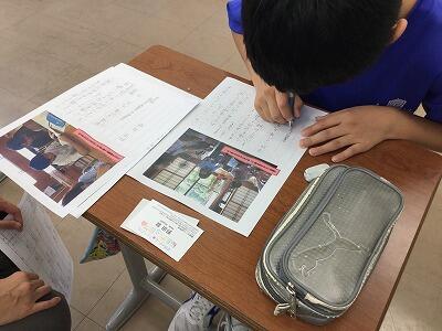 3年生は来週の高校説明会のために事前学習をしていました。高校に対する疑問店は、その時に質問できるようにまとめている最中でした。様々な角度から、高校はどんなところなのかについて考えていました。