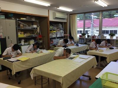 1,2年生は昨日までの体験先への御礼状を書いていました。どの体験先も親切丁寧に応対していただき、子どもたちにとって素晴らしい体験ができました。早速今日の朝から、見違えるようなあいさつの声が響いてきてうれしく思いました。