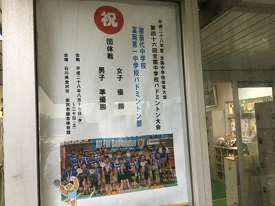 猪苗代中学校で活動している富岡一中バドミントン部(ビクトリープログラム生)は、8月に行われた全国中学校バドミントン大会で団体戦女子優勝、男子準優勝、個人戦女子シングルス優勝や男子ダブルス準優勝など数々の輝かしい結果を収めました。おめでとうございます。先週、顧問の齋藤先生が三春校に報告に来られました。ポスターを掲示して、三春校みんなで祝っています。これからも選手の皆さんのますますのご活躍を祈ります。
