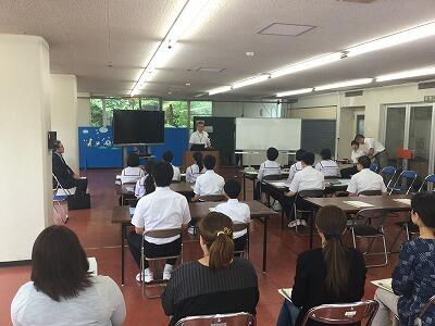 高校説明会を実施しました。今回はふたば未来学園高等学校、田村高等学校、郡山東高等学校、郡山学院高等専修学校、船引高等学校、尚志高等学校、日大東北高等学校の校長先生や進路担当の先生方に来ていただきました。今年は、3年生だけでなく、全校生とその保護者を対象にしました。高校それぞれの特色について具体的なお話を聞き、今後の進路選択のために大変参考になりました。
