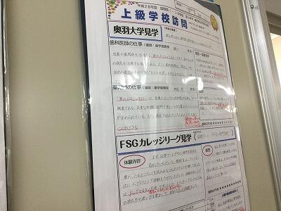 3年生の上級学校訪問や2年生の職場体験学習のまとめができあがり、廊下に掲示してあります。子どもたちが、将来の進学や職業について学んだ記録で、疑問に思ったり、感じたりしたことから、たくさん学んだ様子を読み取ることができます。その時の写真も多数展示してありますので、明日の高校説明会出席予定の保護者の方は、ぜひご覧になってみてください。