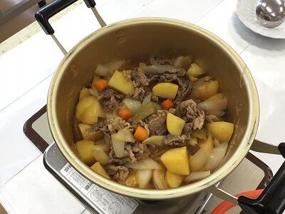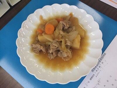 ほくほくのジャガイモにとっても良い味がしみこんで、大変おいしくできました。このおいしさは写真では伝わらないのが残念です。「お家でも家族に作ってあげてね」と言ったら「はい」という返事でした。
