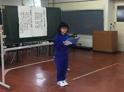 いよいよ本番が来週27日に迫った今日、生徒会が中心となり全校生で壮行会を行いました。各部長が抱負を力強く述べました。生徒会会長から「三春校全員の気持ちと共に戦ってきてください」と激励の言葉が送られました。阿部校長先生からは「自分の目標に向かって精一杯努力することが大切」というお話しがありました。