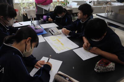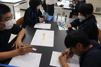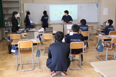 4月18日に行われた総合的な学習の時間におけれる「富岡町について考えるワークショップ」の様子です。