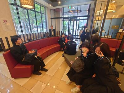 今日宿泊する京都のホテルに到着し、荷物を預け、班別自主研修がスタートしました。