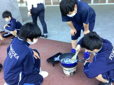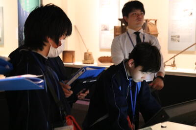 4月25日の総合的な学習の時間に1・2年生は「とみおかアーカイブミュージアム」で見学・体験学習を行いました。展示物などから様々な情報を集めクイズに答えたり、塩炊き体験で海水から塩を作ったりしました。
