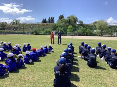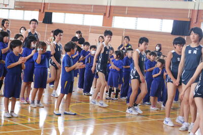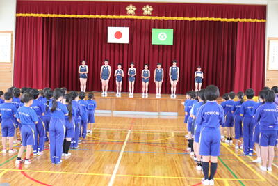 選手紹介とひとり一人の意気込み発表の後、小学校の児童会を中心としてエールが送られました。