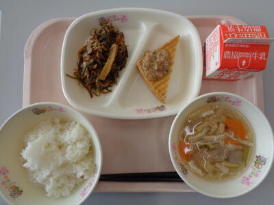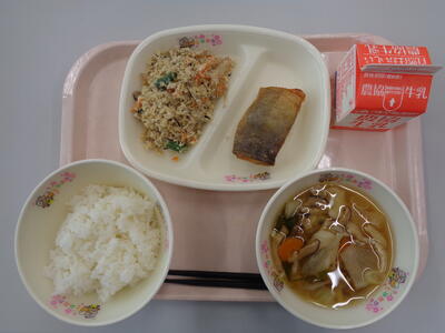 ごはん 牛乳 ほっけ一夜干し おからの炒め物 マミーすいとん