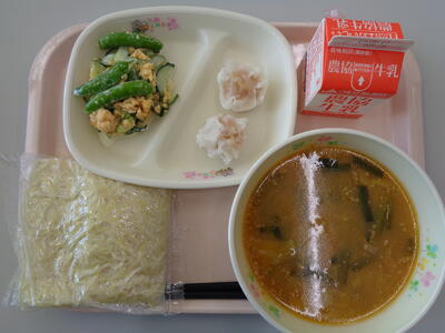 中華麺 牛乳 みそラーメン 海鮮大焼売 スナップえんどうサラダ