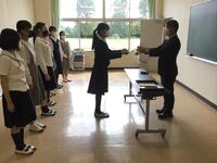 高等学校会長、副会長、書記、会計2人の計5名と中学校副会長、書記、会計の計3名が力を合わせて生徒会の運営に当たります。「自分たちの公約を実現させるためにチャレンジしてほしい」と校長先生からエールが送られました。