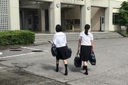 生徒たちは、たくさんの荷物を持って元気に登校しました。
