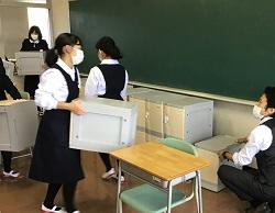 1年生の教室は、生徒の皆さんにお渡しするものが整えられています。