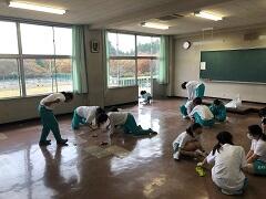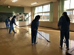 また、午後は奉仕活動を行いました。この奉仕活動は、「待降節」というクリスマスをより良く迎える準備の一貫として行っています。今年度は体育館のシート掃除や教室の床磨きとワックスがけを行いました。