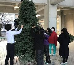 12月15日(火)に、クリスマスツリー点灯式が行われました。今年度は多くの行事が中止になってしまいましたが、何かできることはないかと生徒会役員が企画し、生徒主体で実施することができました。