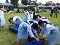 9月21日(日)マリア幼稚園運動会に中高生20名がボランティアとして参加しました。仕事の内容は受付係と園児係で、生徒達は明るく優しく園児に接していました。