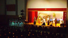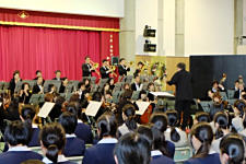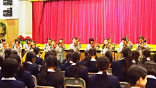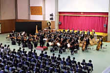 12月12日(月)に、文化庁巡回公演の本公演が、本校体育館で行われました。「ザ・カレッジオペラハウス管弦楽団」の方々によるコンサートや生徒参加型のプログラムが組まれていました。総勢65名の管弦楽団によるコンサートは圧巻で、会場全体が大きな感動に包まれました。生徒参加型のプログラムでは、オーケストラ伴奏による合唱や、指揮者体験などさせていただき、本当に夢のような時間を過ごすことができました。