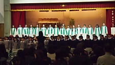 藤田恵神父様から、イエスが最も貧しい場所で小さな幼子として生まれたことが意味することは、傷つき弱い立場になった人々と接することが、連帯する心や他者に寄り添う温かで豊かな心を育むということであるとのメッセージをいただきました。第1部の最後は、生徒全員で「もろびとこぞりて」「ハレルヤコーラス」の2曲を、クリスマスの喜びを込めて歌いました。