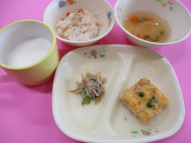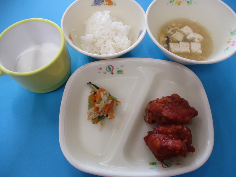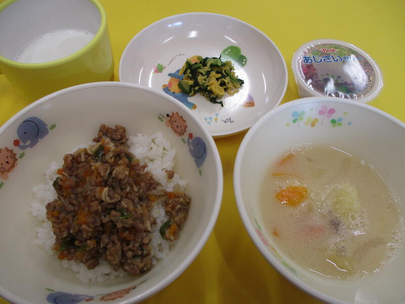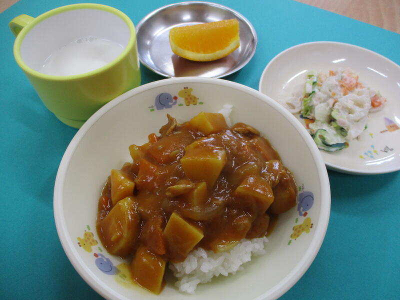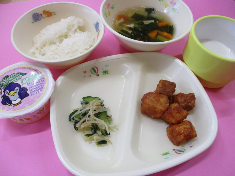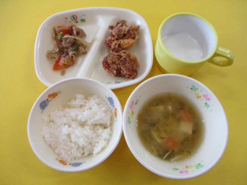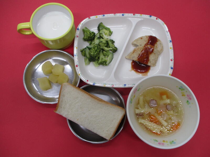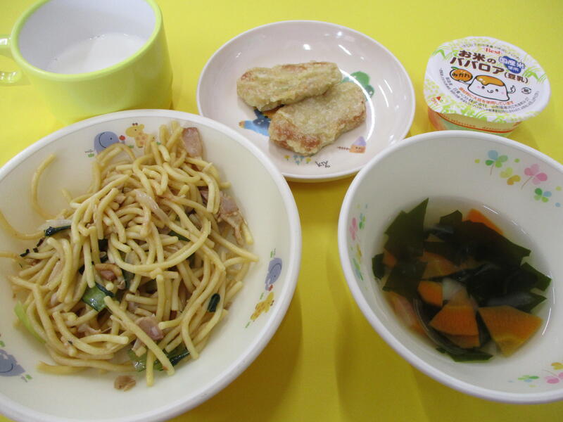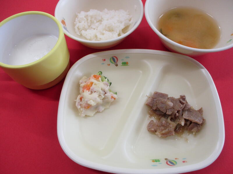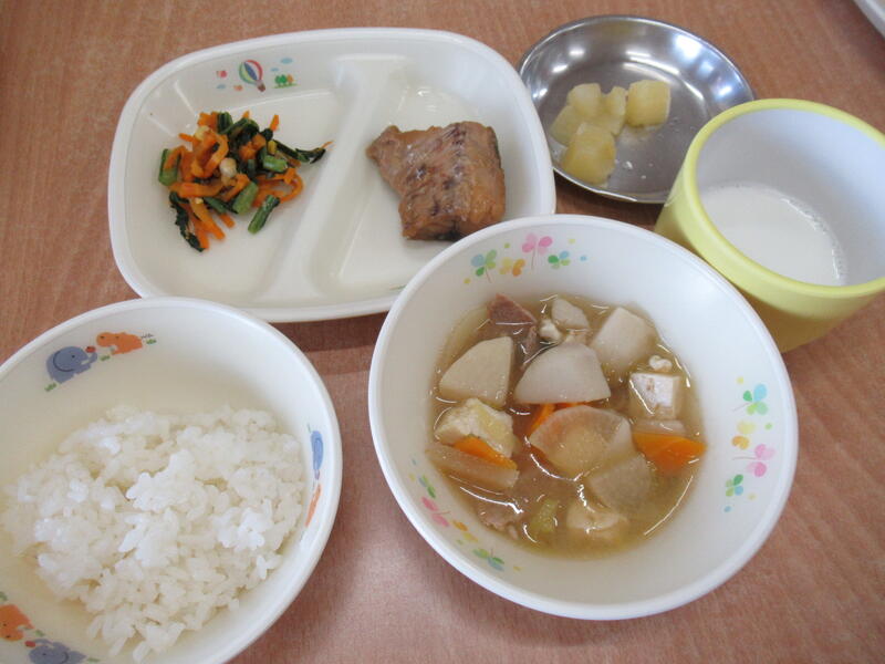 もも・つくし・すみれ・たんぽぽ組さんもお部屋で給食をたのしみました