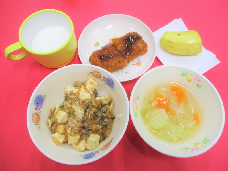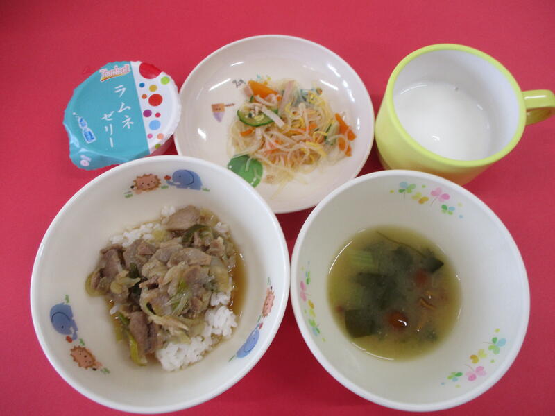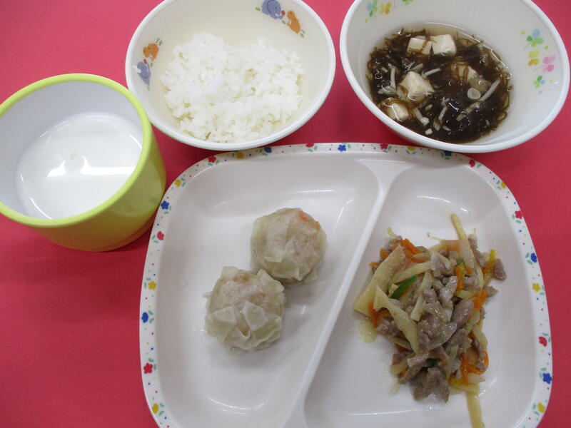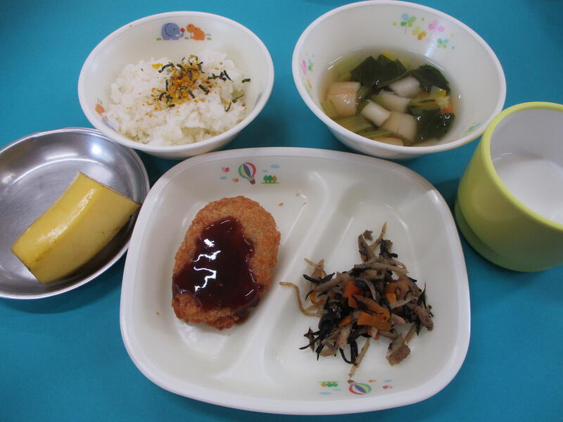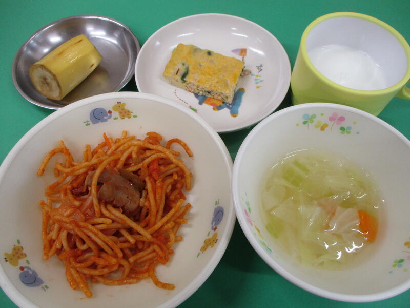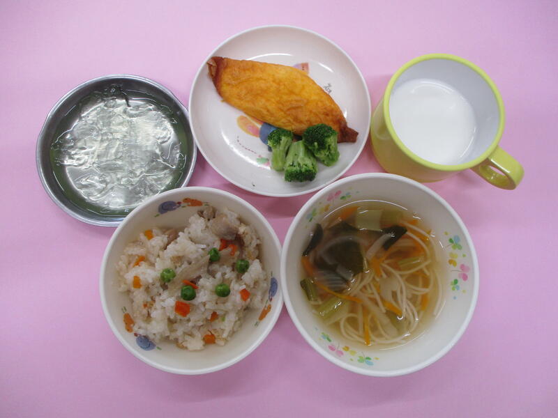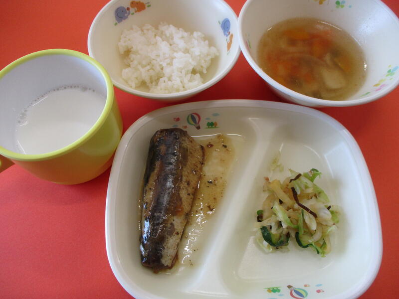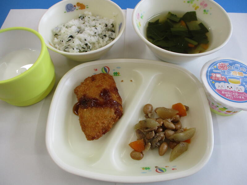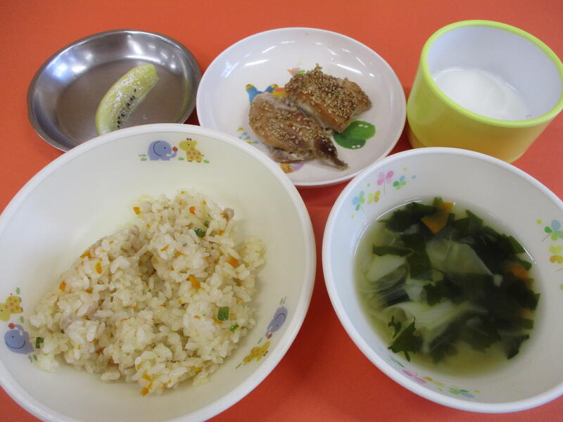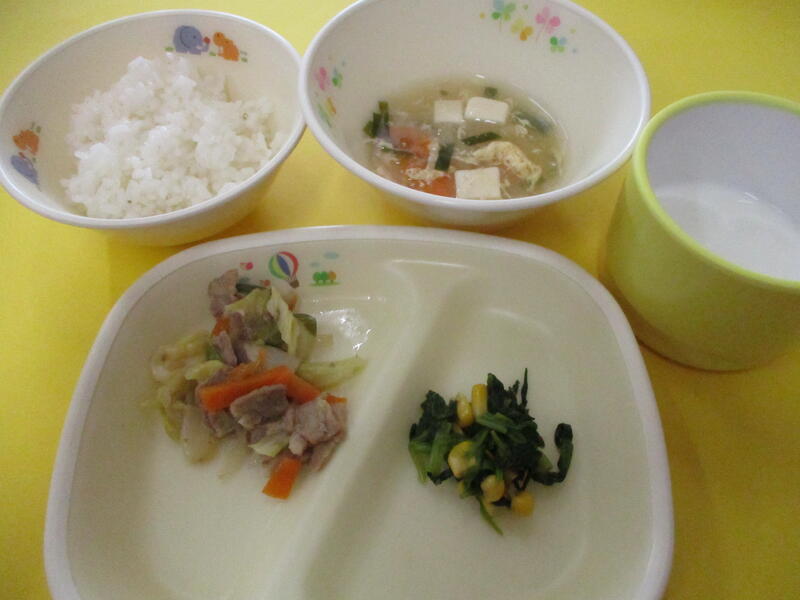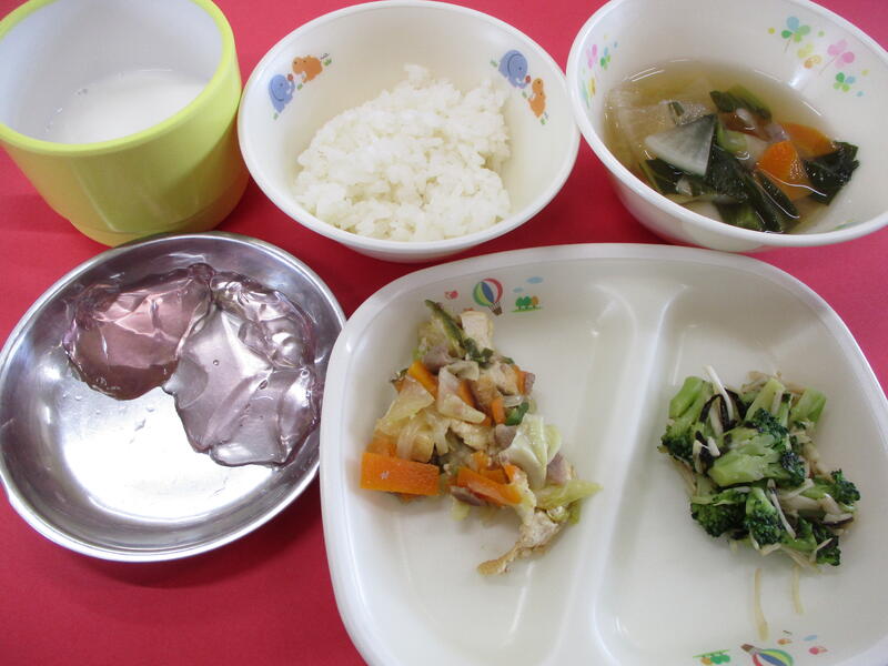 もも・つくし・すみれ・たんぽぽ組さんもお部屋で給食をたのしみました