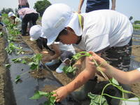「ラーメン体操」で元気に体をうごかして準備運動をしました