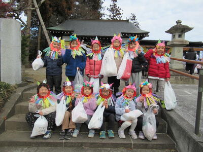 たんぽぽ・ゆり・さくら組が七五三のお祝いで祖母井神社にお参りに行きました