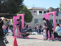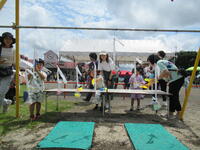 輪投げ☆かわいいキャラクター目がけて、えいっ何本入ったかな